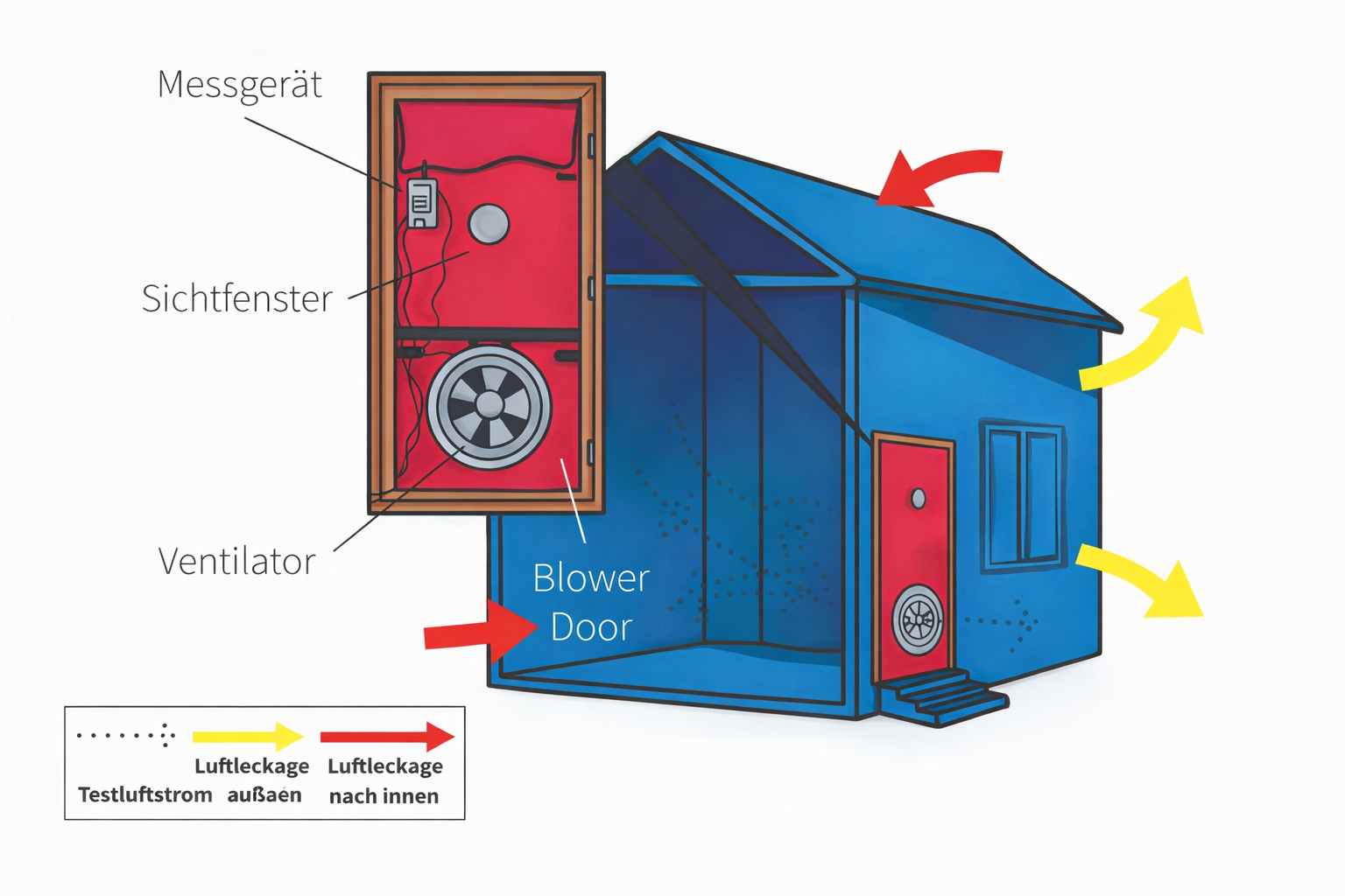 Mit dem Blower-Door-Test prüfen wir die Luftdichtheit Ihres Gebäudes und decken selbst kleinste Schwachstellen auf.