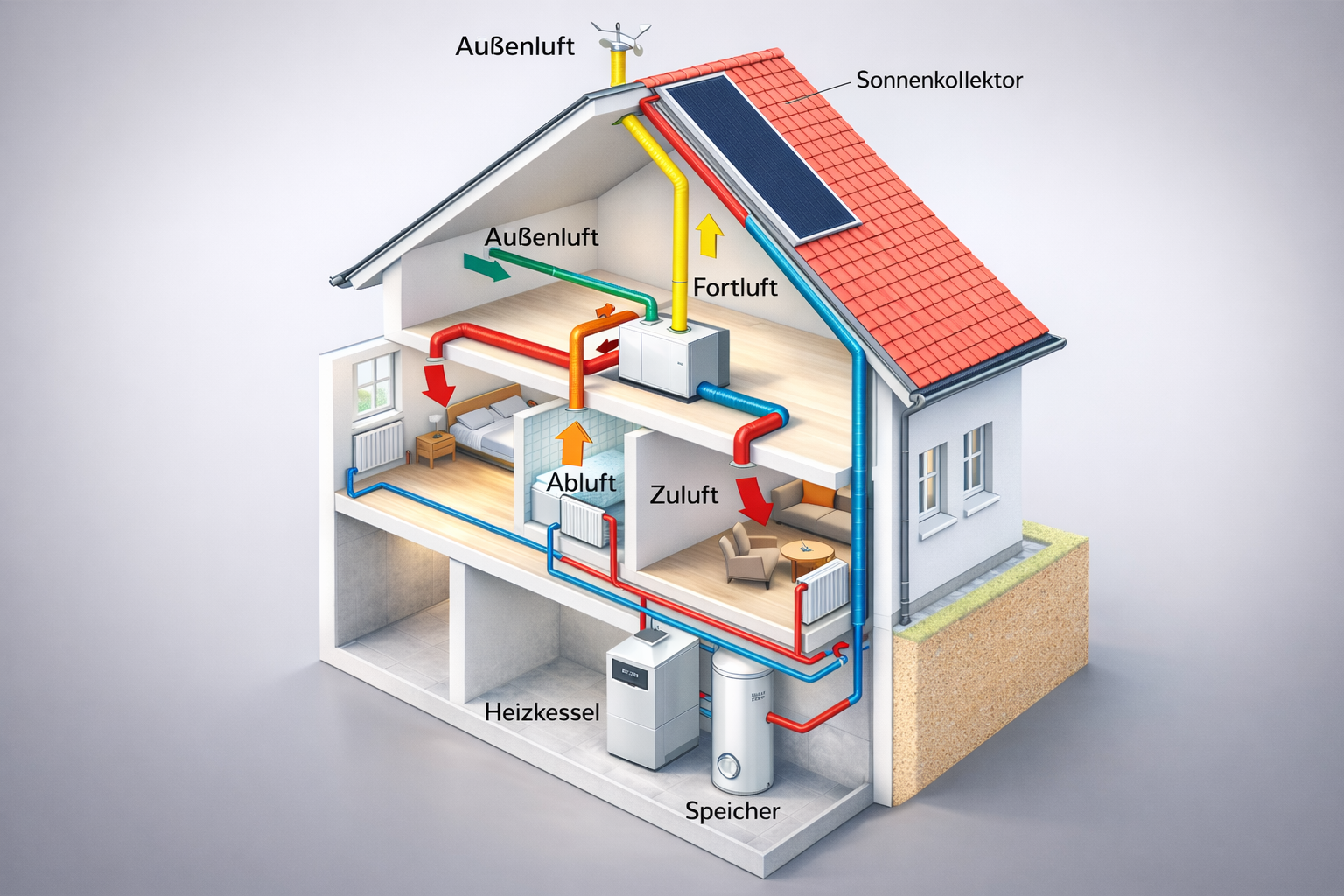 Ein professionelles Lüftungskonzept schützt Ihr Gebäude vor Feuchtigkeit und sorgt für ein dauerhaft gesundes Raumklima – besonders bei dichten Neubauten oder Sanierungen.